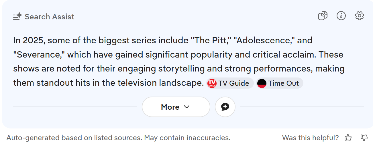 You see, the problem with A.I. results on the top of the search page is that they regurgitate. These algorithms don’t seem to “think” much for themselves, they mostly just agree with the information below them. Which means the data is skewed.